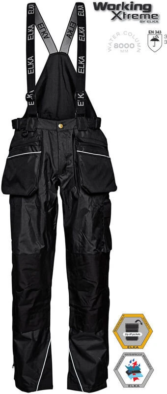 Diese Elka Bundhose aus der Working Xtreme Serie ist fĂŒr den professionellen Einsatz konzipiert. Diese Hose ist mit vielen Taschen ausgestattet wodurch sie ausreichenden Stauraum fĂŒr Ihre Utensilien haben. ZusĂ€tzlich verfĂŒgt diese Regenhose ĂŒber zwei abnehmbare Werkzeugtaschen die mit zusĂ€tzlichen Reflexbiesen zur besseren Sichtbarkeit ausgestattet sind. Wenn Sie Ihr Werkzeug in den abnehmbaren Werzeugtaschen verstauen, empielt es sich die abnehmbaren TrĂ€ger zu verwenden. Diese verhindern das Rutschen der Hose durch das zusĂ€tzliche Gewicht der Werkzeuge. Die Hosenbeine sind zusĂ€tzlich mit Reflexbiesen versehen. Diese erhöhen die Sicherheit in der Dunkelheit durch eine deutlich bessere Sichtbarkeit des TrĂ€gers. Die Beine sind an den Innenseiten zusĂ€tzlich verstĂ€rkt.