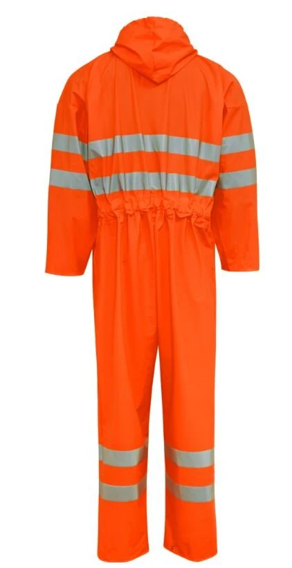 Der hochsichtbare Warnschutzoverall 078000R bietet mit einer WassersĂ€ule von 10000mm höchsten NĂ€sseschutz. So werden Sie bei schlechtem Wetter optimal gesehen und sind vor NĂ€sse und Regen geschĂŒtzt. ZusĂ€tzlichen Regenschutz bietet die feste Kapuze mit Kordelzug.