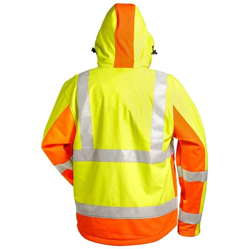 wasserdichte und winddichte Warnschutzjacke Softshell Jacke JIM der Marke elysee die aus robustes Softshellmaterial gefertigt wurde. Durch das Fleecematerial innen ist diese Jacke angenehm zu tragen. Die angebrachten Reflexstreifen sorgen für eine gute Sichtbarkeit bei Dunkelheit.
