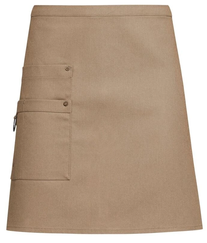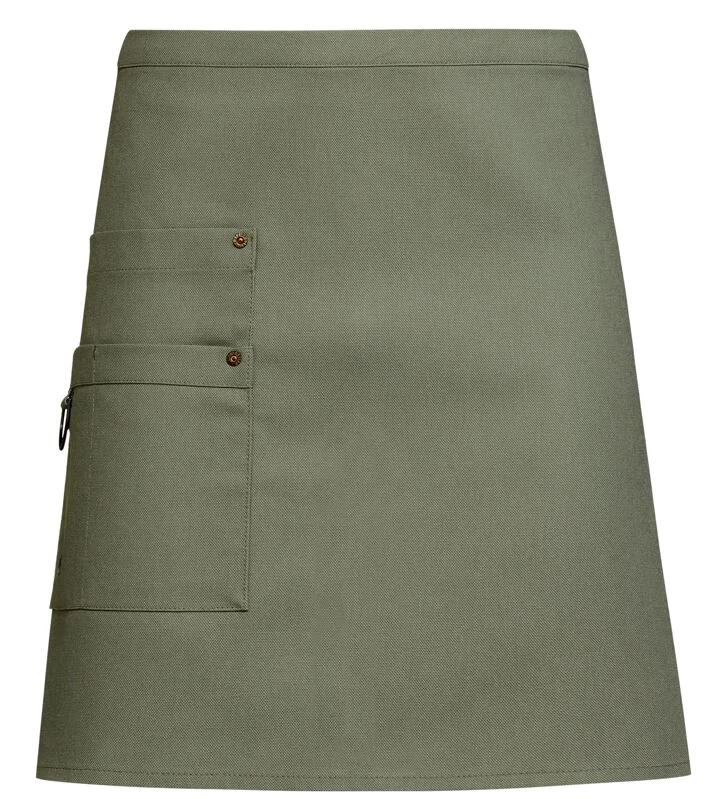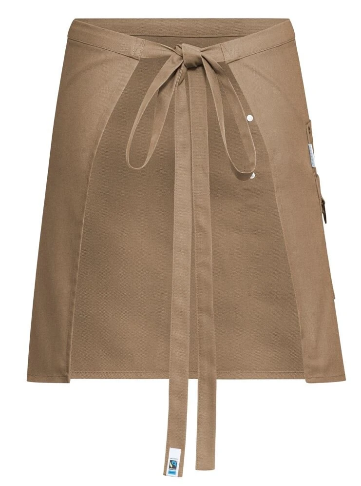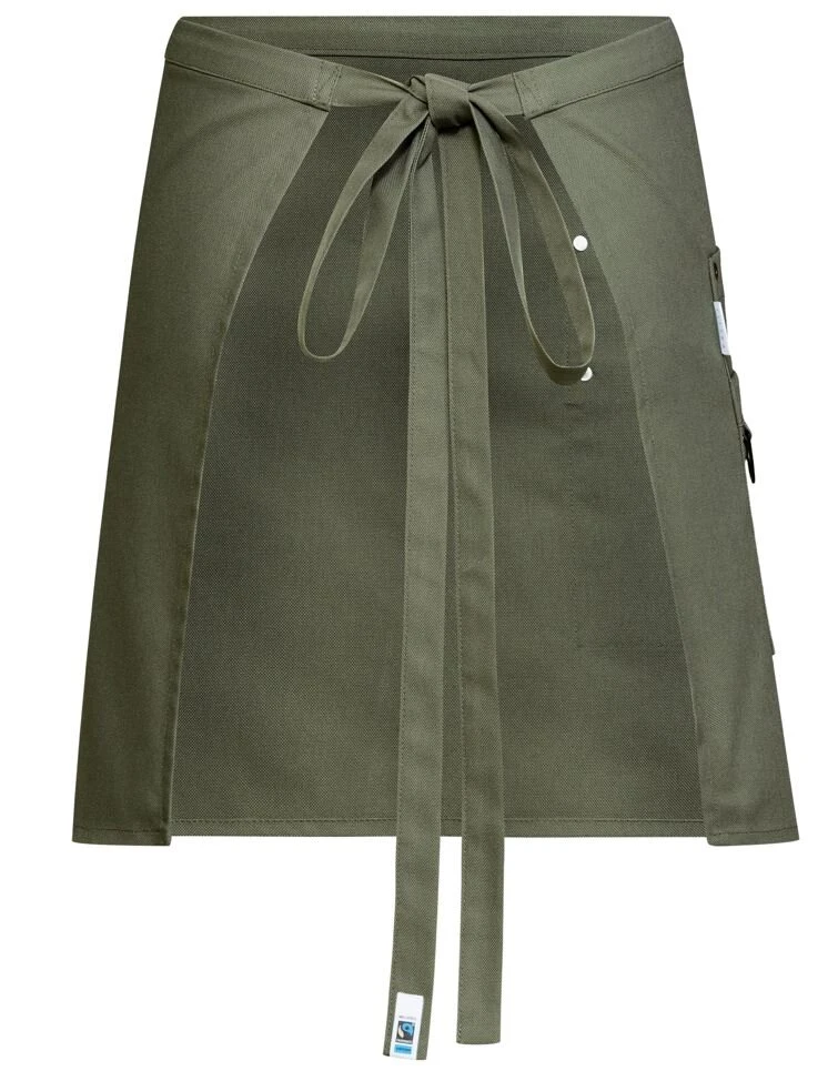 Ein Vorbinder mit praktischen Taschen für Ihre Utensilien (wie Smartphone, PDA, Schreibblock, Brille, etc.). Diese Schürze ist nachhaltig aus recyceltem Polyester und der Fairtrade-Baumwolle hergestellt und durch das Canvas-Gewebe zudem sehr stabil für den Einsatz im Hotel- und Gastrogewerbe.