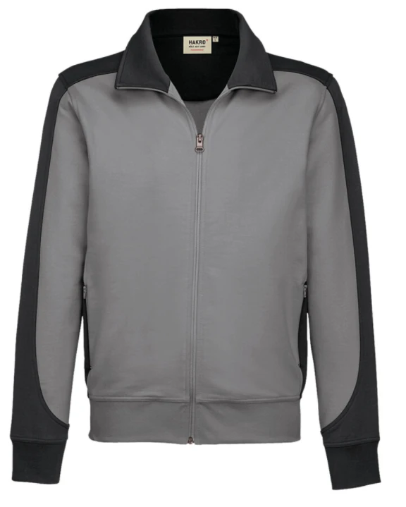 Die 2-farbige Herren Sweatjacke von Hakro ist ein Verkaufsschlager bei Corporate Wear fĂĽr Ihre einheitliche Arbeitskleidung.