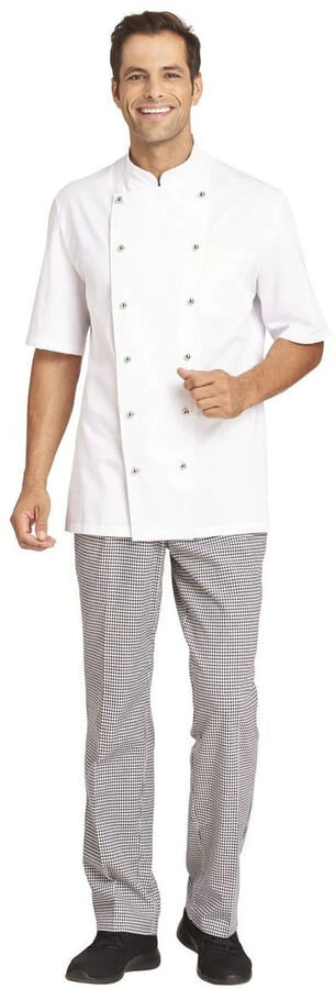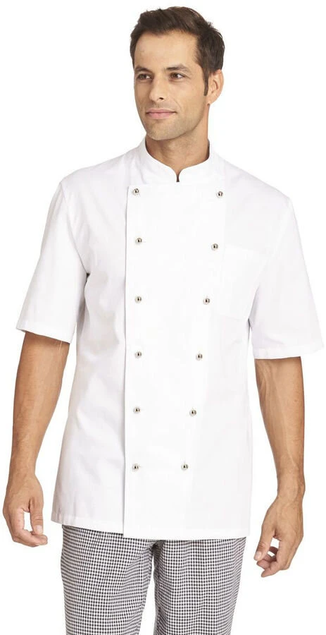 Leiber Kochjacke halbarm für Damen und Herren die aus reiner Baumwolle gefertigt wurde. Die Leiber Kochjacke verfügt über eine Brusttasche und einer breiten Umschlagmanschette. eine klassische Kochjacke von Berhard Leiber die Ihnen einen angenehemn Tragekomfort bietet.