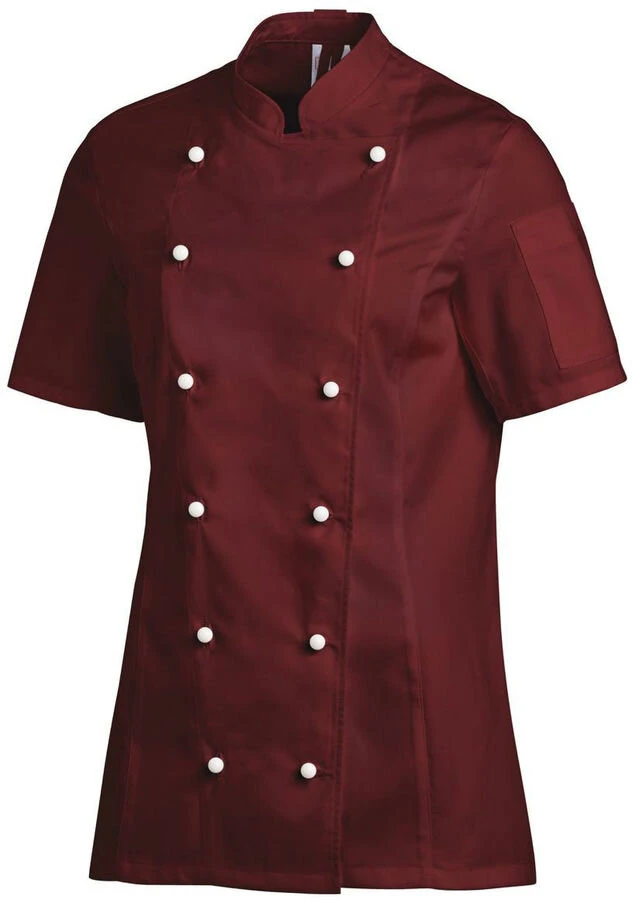 Eine elegante Leiber Damen Kochjacke 08/2519 die aus pflegeleichtem Mischgewebe gefertigt wurde. Diese Kochjacke ist in frischen modernen Farben wie schwarz, bordeaux und weiß erhältlich. Die Teilungsnähte betonen Ihrer Figur und machen diese Kochjacke zu einem Hingucker in Küche, Service oder Hotel.