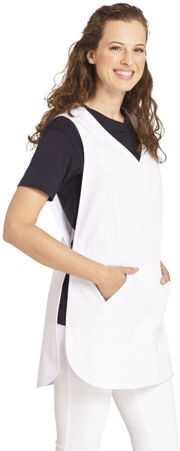 Moderne Überwurfschürze 08/641 von Leiber mit Ton in Ton Paspelierung. Die Leiber Damen Chasuble mit Tasche und Handytasche 08/641 von Bernhard Leiber verfügt über Wiener Nähte. Die Weite der Leiber Damen Chasuble lässt sich durch einen Druckknopfverschluss eingestellen.