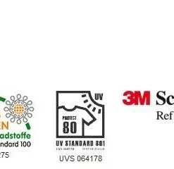 orange und gelb: 85 % Polyester, 15 % Baumwolle, Diagonal-Köper, ca. 290 g/m², einlauffest nach DIN EN 26330