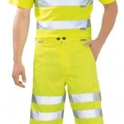 Warnschutzkleidung ist unerlässlich für alle Berufe, bei denen es zur Unfallverhütung auf eine sehr gute Sichtbarkeit ankommt. Neben den hochleuchtenden Farben orange oder gelb ist diese Sommer Short mit Reflexstreifen ausgestattet.