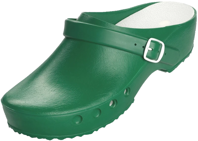 Ein über Jahrzehnte bewährter Standard OP-Clog mit wechselbarer PU-Einlage mit Vliesdecksohle ist von Größe 36 bis zur Doppelgröße 47/48 lieferbar. Die seitlichen Belüftunglöcher und die fußfreundliche, anatomische PU-Vlies Einlage sorgen für einen sehr guten Tragekomfort. Die OP-Schuhe sind antistatisch sowie wasch- und desinfizierbar bis 70°C. Geprüft in Anlehnung an EN ISO 20347:2012 SRA. Einsatzgebiet im Krankenhaus, der Klinik, der Artzpraxis, im Pflegeheim, der Apotheke oder sonstigen Arbeitsplätzen im Gesundheitswesen.