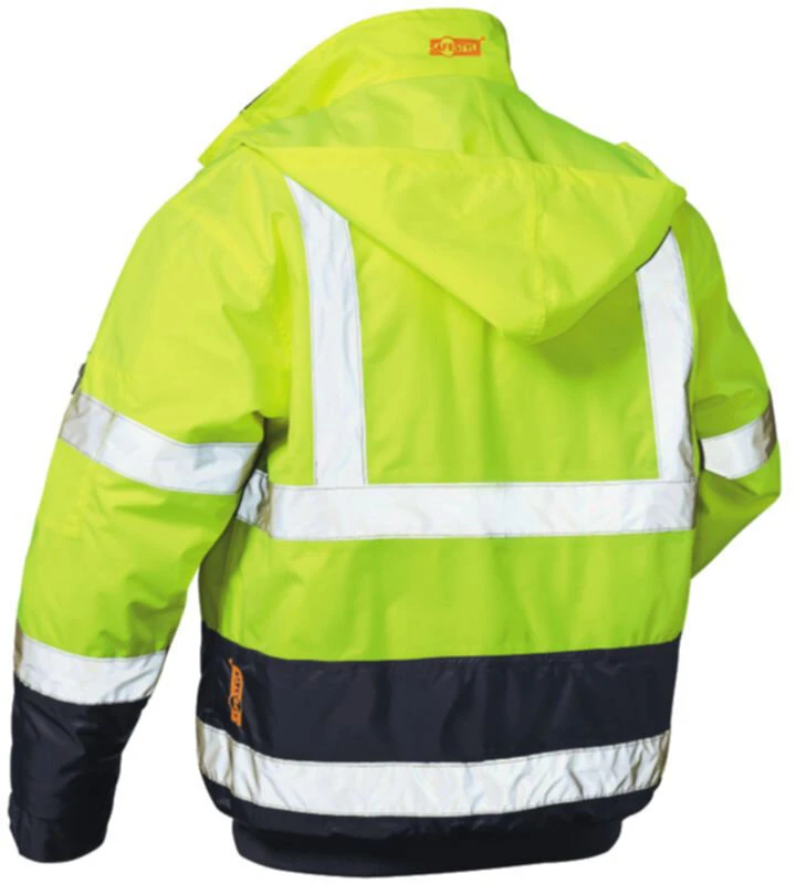 Warnschutz Pilotenjacke AXEL der Marke Safestyle die sowohl winddicht und wasserabweisend ist. Die geschweißten Nähte verhindern das Eindringen von Nässe in die Jacke. Zusätzlichen Schutz vor Regen und Wind bietet die im Kragen integrierte Kapuze.
